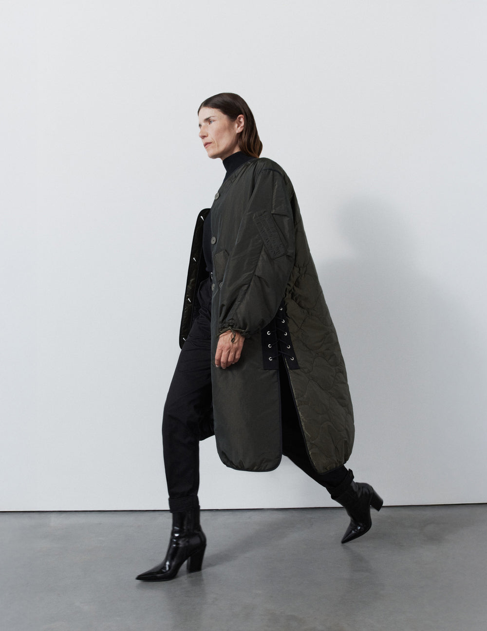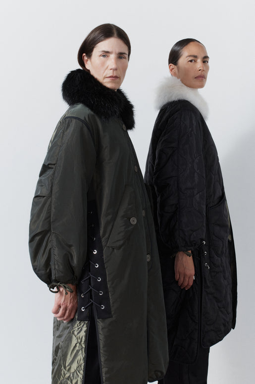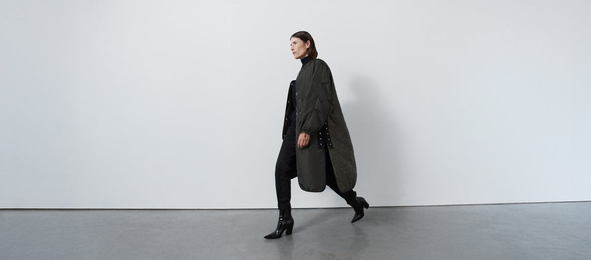 The beloved Parachute Parka, redefined. An exaggerated silhouette with utility-inspired drawcord lacing at side seams for adjustable style and shape. Reversible by design. Crafted from luxe Italian silk-nylon.