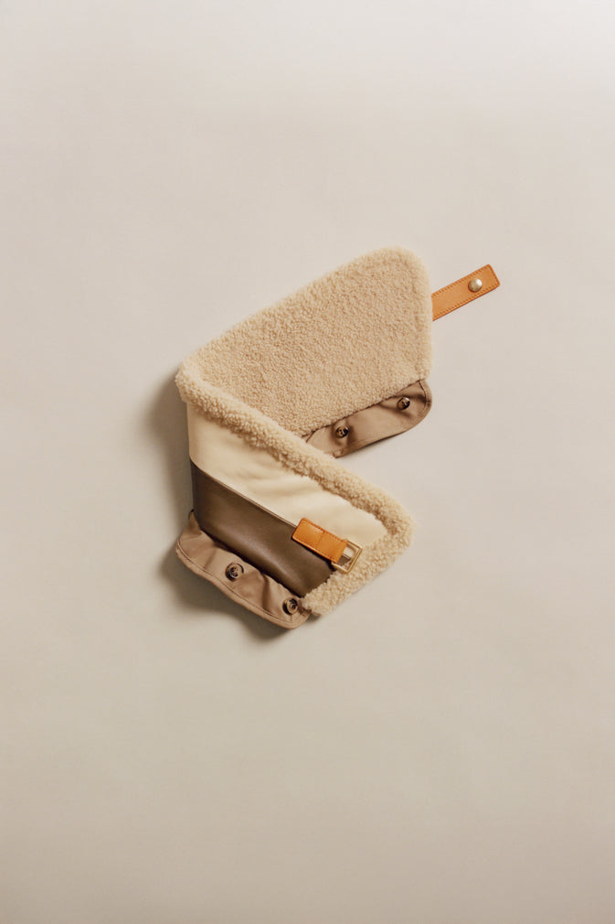 A refined update on a vintage staple. The plush shearling and contrast nappa leather design, finished with an adjustable throat latch, brings warmth and texture to any look. Attach to any Marfa Stance outerwear for a personalised finish.