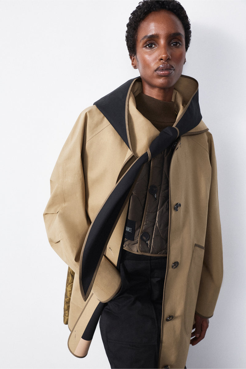 Our iconic rainwear, reimagined in our newest colourway, Black / Honey. Crafted from bonded, water-resistant Italian cotton, each piece is designed for changeable weather with front storm flaps, taped seams and reversible construction. Considered details — from nylon panels to adjustable belts — ensure protection, versatility and longevity. From the Autumn / Winter 2025 collection.