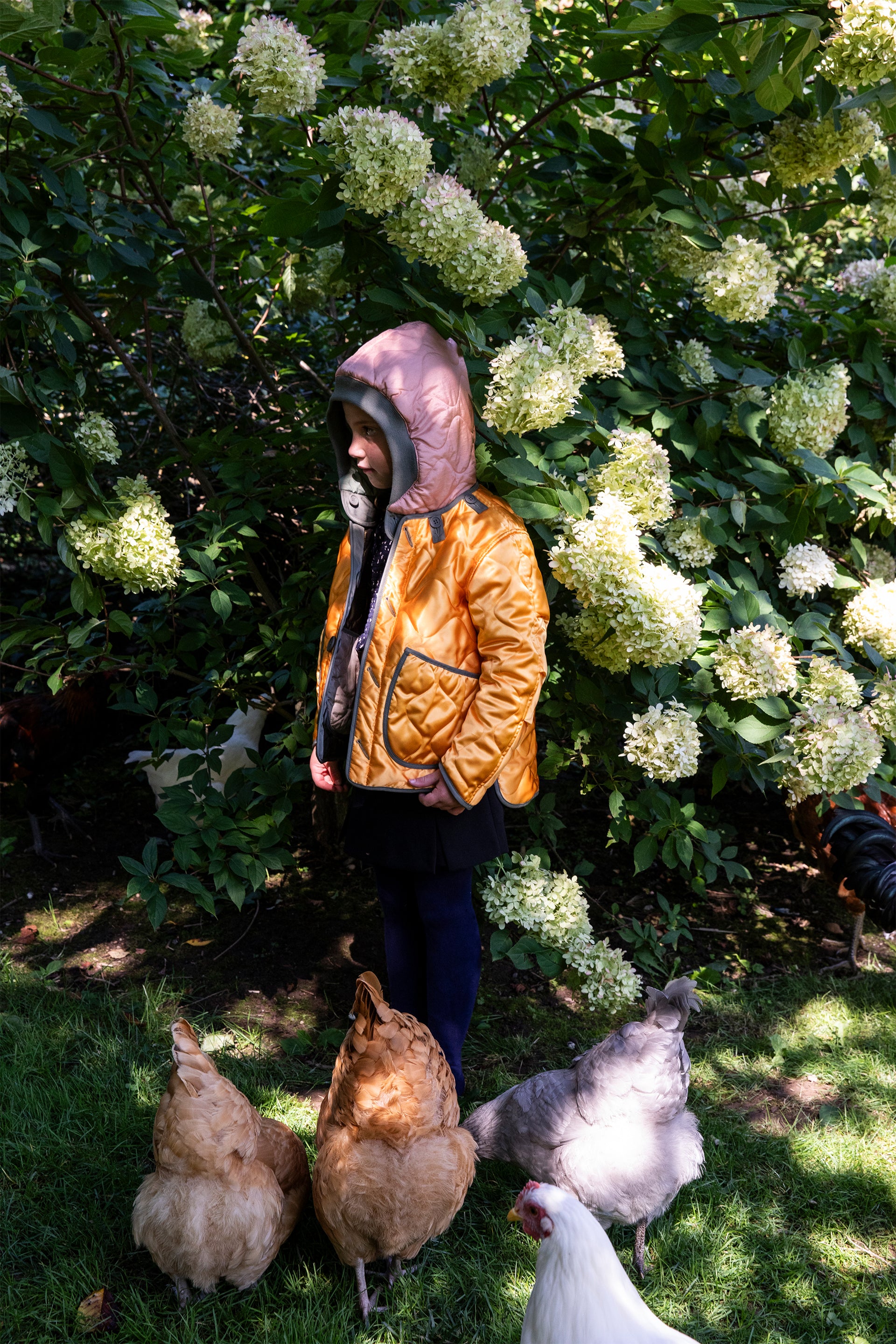 Sustainability, individuality, and versatility are recurring themes in Emily’s work and home life. She and her family now live in a more rural setting, raising chickens, composting, and soon, sheep. Her children care for the animals, developing empathy and responsibility along the way – an everyday practice in living lightly on the planet and making the most of what they already have.