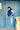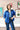 Lucy wears the Patchwork Quilt in cobalt in size S with the Aviator collar in natural, orange and the Parachute Vest in cobalt in size S.