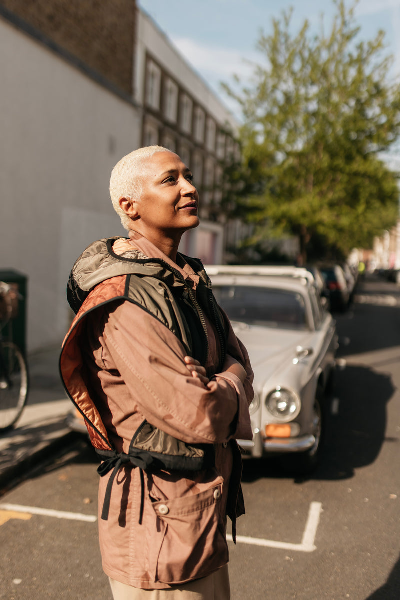 Cath Kidston is a British designer known for her iconic floral patterns, which defined her global fashion and homeware brand. Her legacy continues to influence design through her studio and new ventures. Here she wears our iconic patchwork rain collection.
