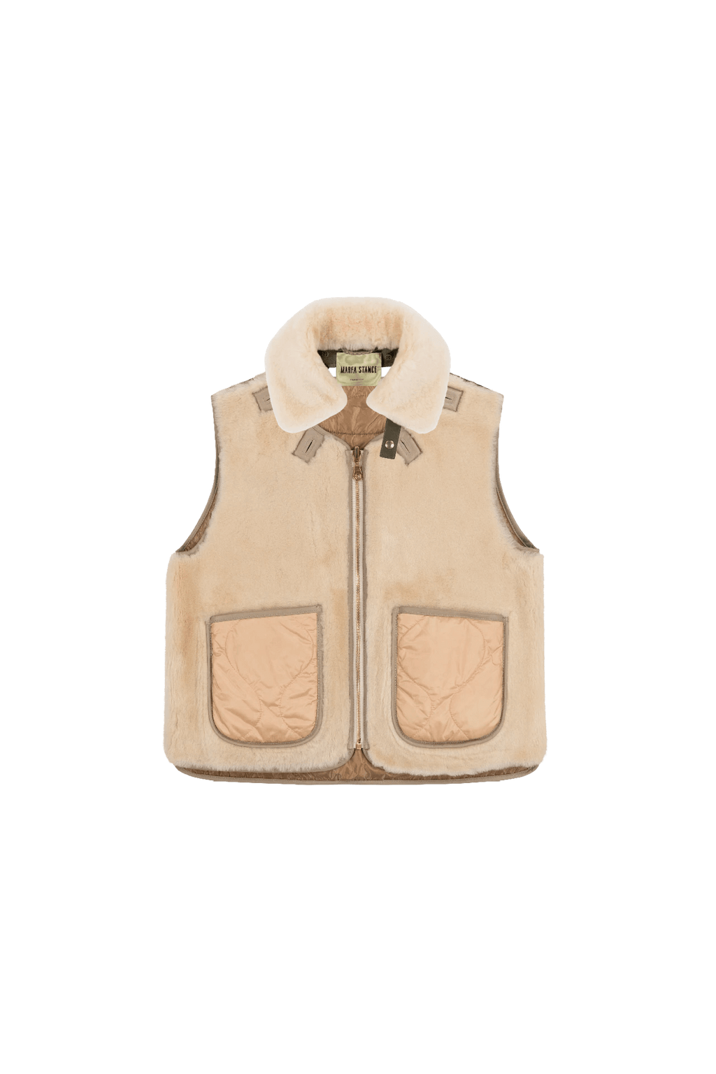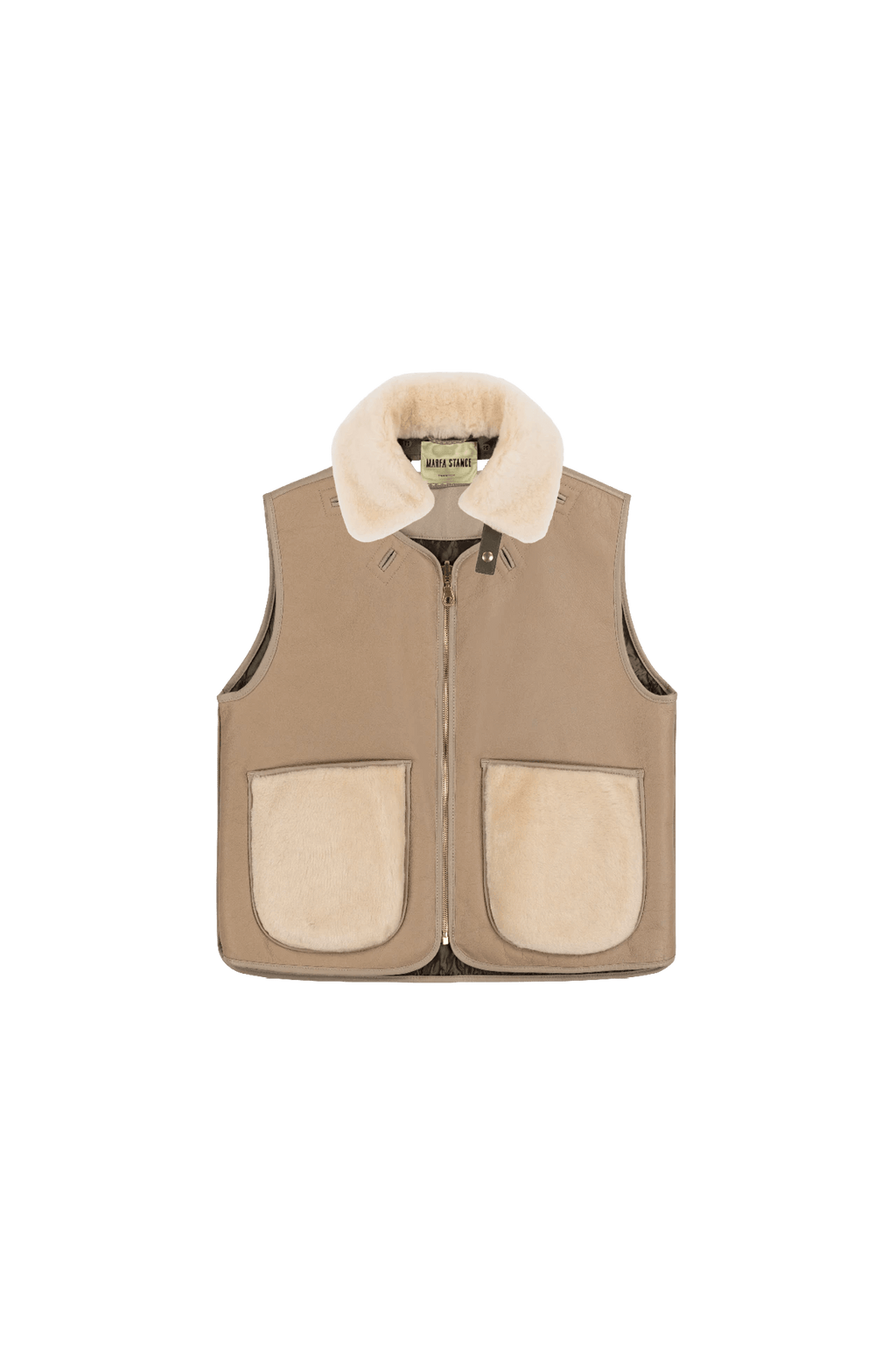 This style involves numerous processes, starting with hand selecting the shearling. Our Italian factories employ an expert to obtain the best quality, a necessary step as we use Italian shearling that is a by-product of the food industry, a conscious choice we made as a brand to avoid consumer waste and animal cruelty, whilst still maintaining the highest quality materials. The shearling is then hand painted with a water repellent napa finish, while the quilting is produced separately. The button holes around the neckline need to be welded as they are leather, and then the entire garment is bound in leather, totalling twenty hours.
