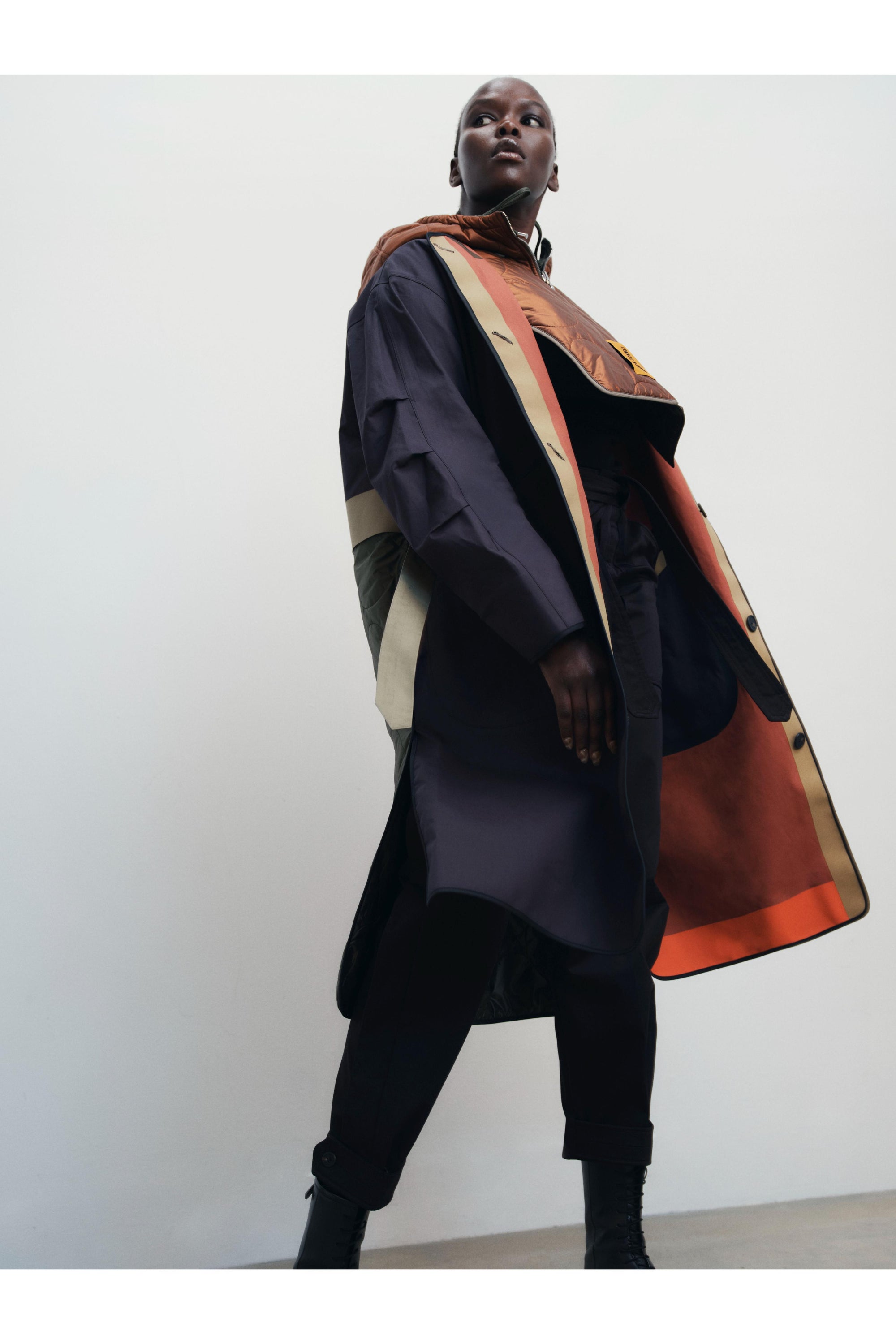 Our model is 5′ 9" and wears a size S Size down for a closer fit.