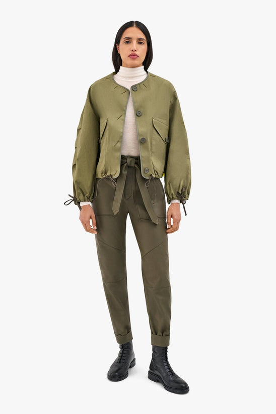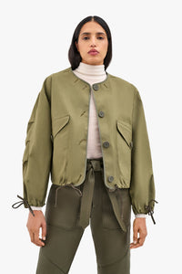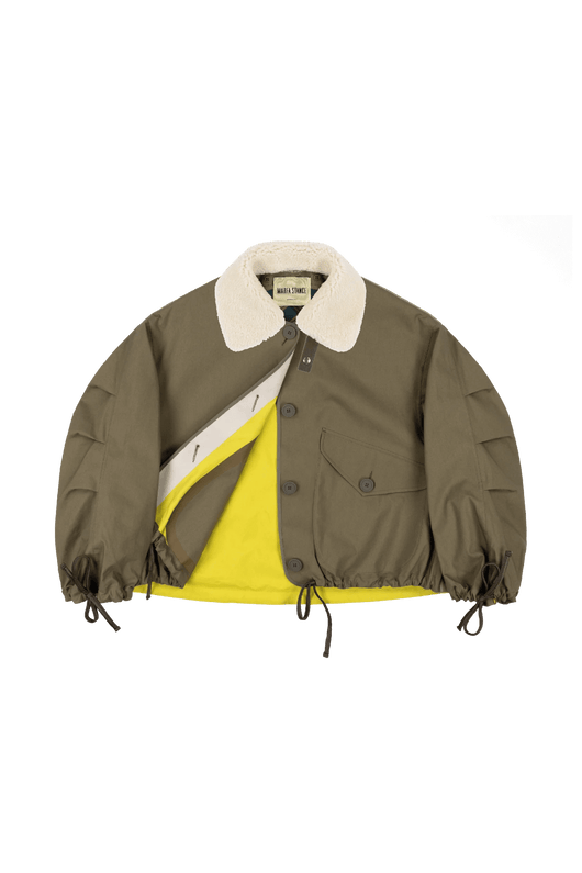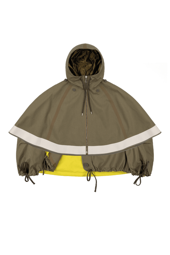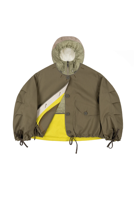 The reversible Rain Bomber offers many versatile ways to wear - taking the cropped and oversized silhouette of the Parachute Bomber the style can fitted by cinching the neck, hem and cuff using the functional parachute inspired drawcords; or wear it uncinched and loose for an oversized silhouette with an A-Line hem; or fully reverse for an entirely different look with one jacket.