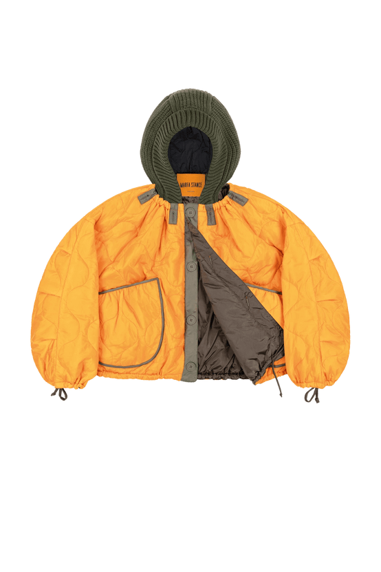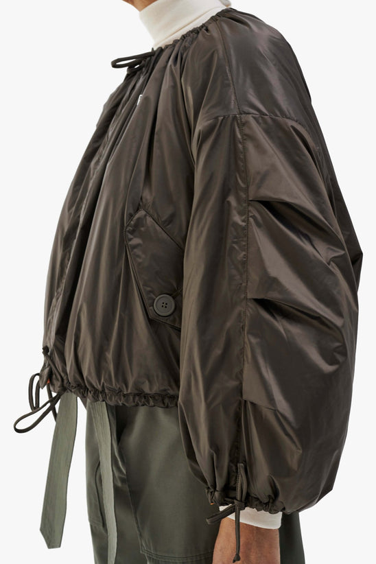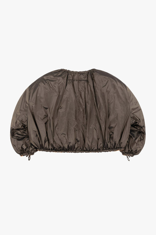 The iconic reversible Parachute Bomber is our most wanted modular style. We love this style for its cropped and oversized silhouette, along with its light weight, lofty and water-repellent properties - featuring 100% recycled and PFC-free nylon. The reversible Parachute Bomber offers many versatile ways to wear - style it fitted by cinching the neck, hem and cuff using the functional parachute inspired drawcords; wear it uncinched and loose for an oversized silhouette; or fully reverse for an entirely different look with one jacket.
