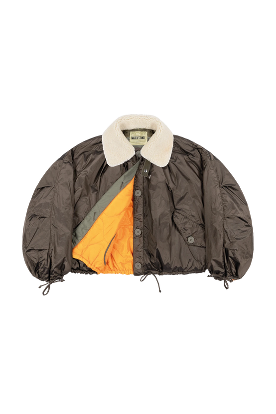 100% reversible, you can choose to wear the Parachute Bomber with the quilted side on the outside, or the scrunchy showerproof Italian nylon.
