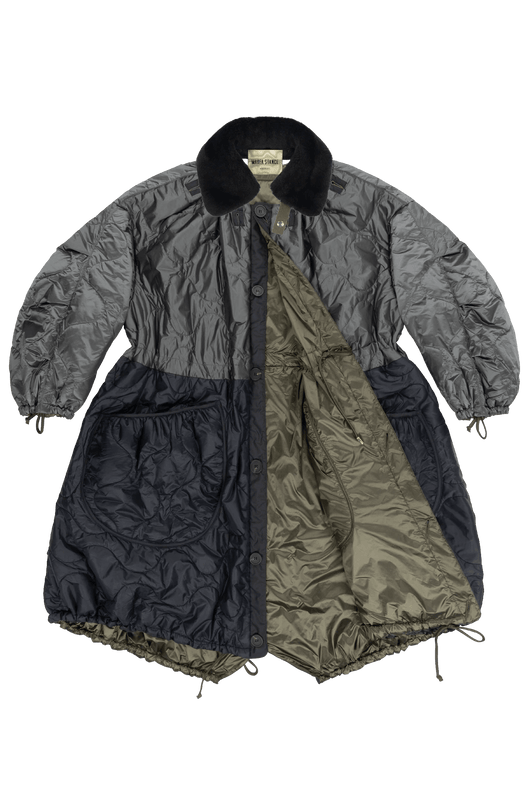 The iconic reversible Parachute Parka is our most wanted modular style. We love the Parachute Parka for its lofty and voluminous silhouette, along with its light weight and water-repellent properties. This style features 100% recycled and PFC-free Italian nylon. Style it fitted by cinching the waist, hem, neck and cuff using the parachute inspired functional drawcords; wear it uncinched and loose for an oversized silhouette; or fully reverse for an entirely different look with one jacket.