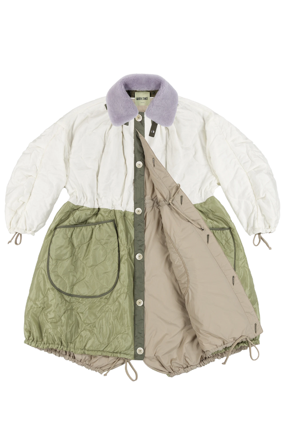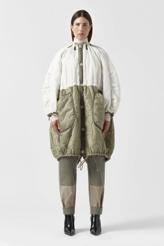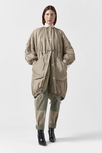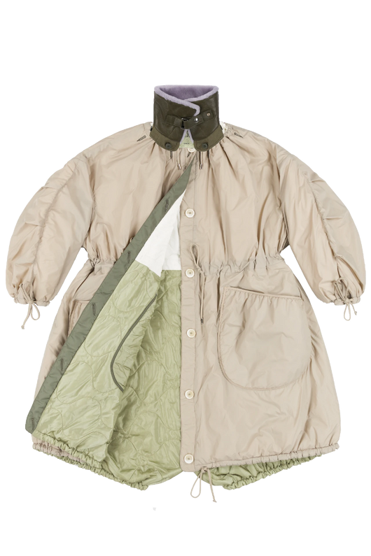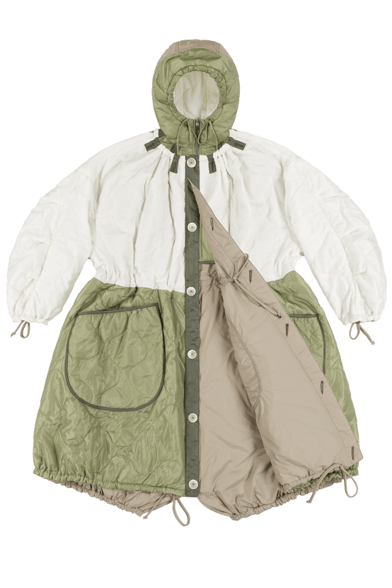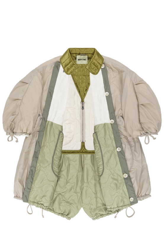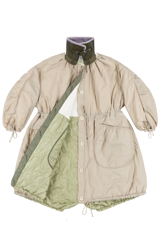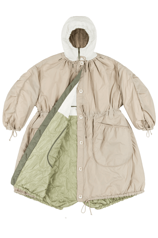 The iconic reversible Parachute Parka is our most wanted modular style. We love the Parachute Parka for its lofty and voluminous silhouette, along with its light weight and water-repellent properties. Style it fitted by cinching the waist, hem, neck and cuff using the parachute inspired functional drawcords; wear it uncinched and loose for an oversized silhouette; or fully reverse for an entirely different look with one jacket.