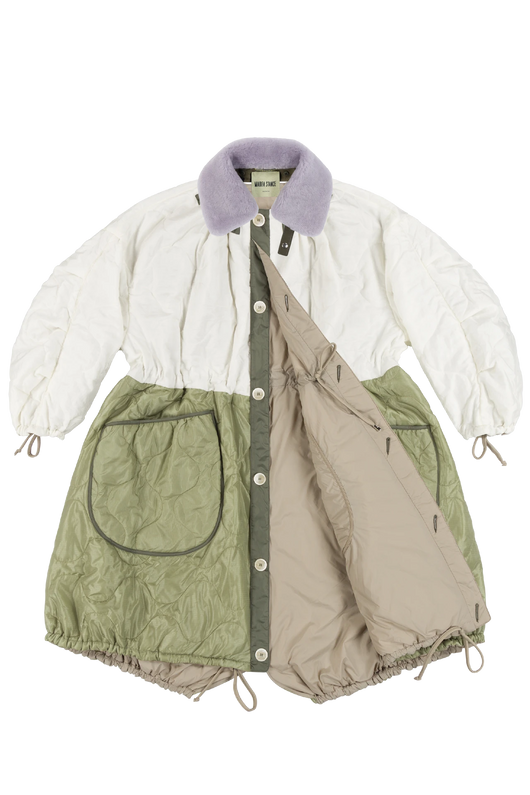 • Adjustable neckline, waist, hem and cuff. Cinch with cords to make a slimmer fit or pull to release to make an oversized cut