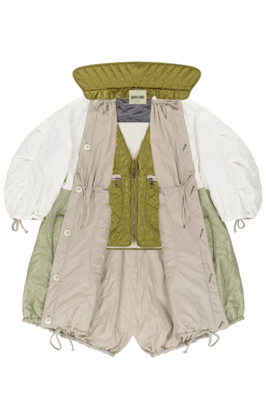 Personalise your piece and make it modular. Add a hood for extra protection against the elements, add a collar for both style and for function, or layer a reversible liner or shareable quilt inside for added warmth during the colder seasons.