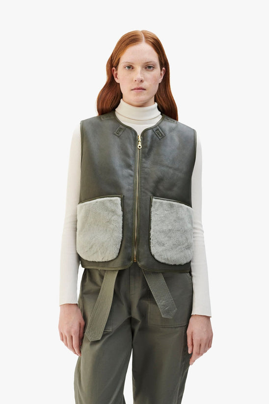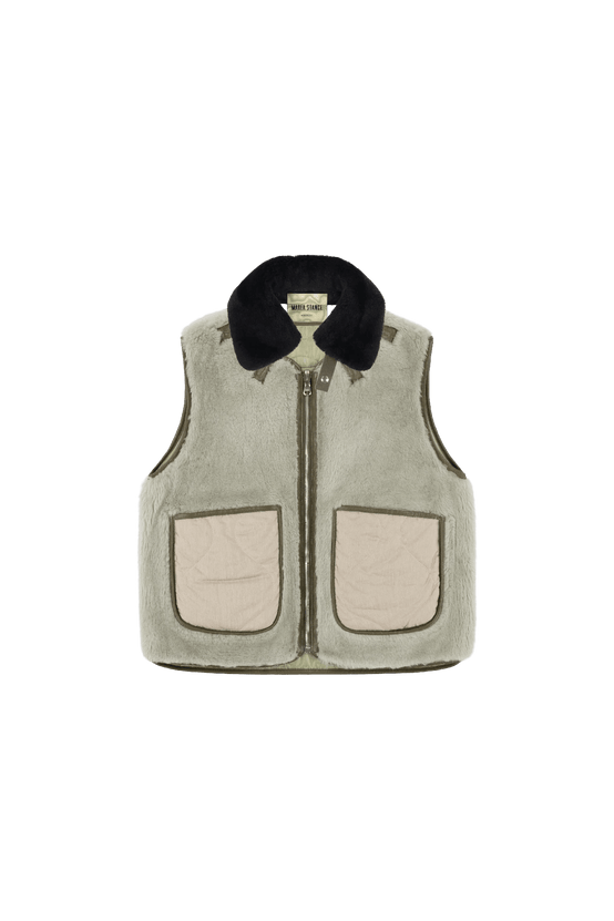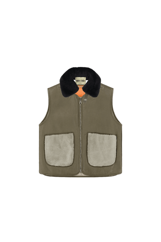 Fast becoming our best-selling vest, inspired by the style and functionality of vintage aviator jackets, this fully reversible style has been engineered using the finest nappa finished shearling and our signature quilted nylon. A thoroughly modern hybrid, the reversible Cropped Aviator Vest with a slimline and cropped silhouette, is ideal to wear as a slim fit liner or alone as a sleeveless layer over a sweater or a dress. The style pairs perfectly with our Aviator collar for an authentic flight jacket look.