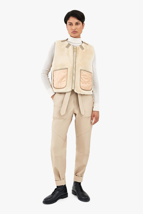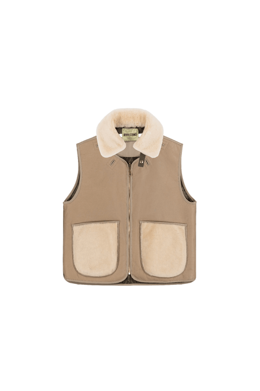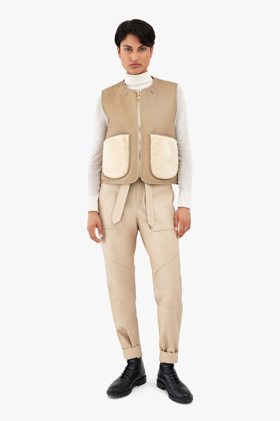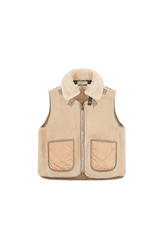 Fast becoming our best-selling vest, inspired by the style and functionality of vintage aviator jackets, this fully reversible style has been engineered using the finest nappa finished shearling and our signature quilted nylon. A thoroughly modern hybrid, the reversible Cropped Aviator Vest with a slimline and cropped silhouette, is ideal to wear as a slim fit liner or alone as a sleeveless layer over a sweater or a dress. The style pairs perfectly with our Aviator collar for an authentic flight jacket look.