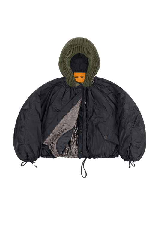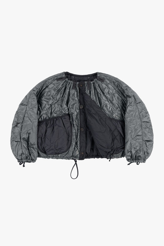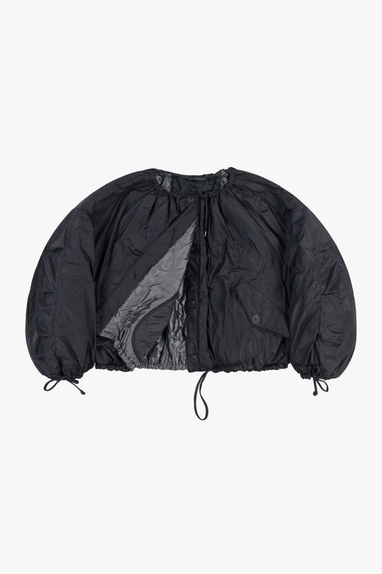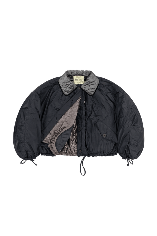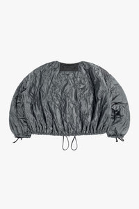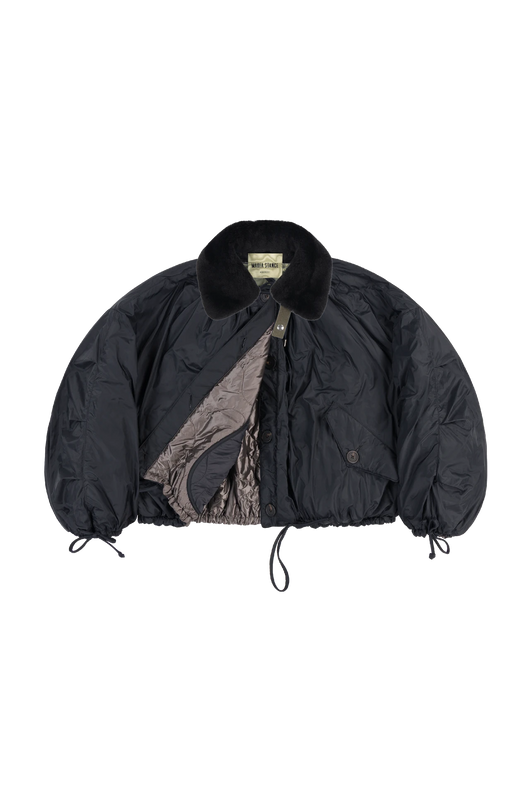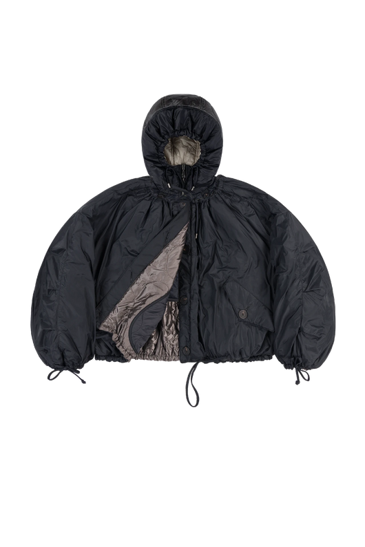 The iconic reversible Parachute Bomber is our most wanted modular style. We love this style for its cropped and oversized silhouette, along with its light weight, lofty and water-repellent properties. The reversible Parachute Bomber offers many versatile ways to wear - style it fitted by cinching the neck, hem and cuff using the functional parachute inspired drawcords; wear it uncinched and loose for an oversized silhouette; or fully reverse for an entirely different look with one jacket.
