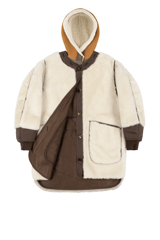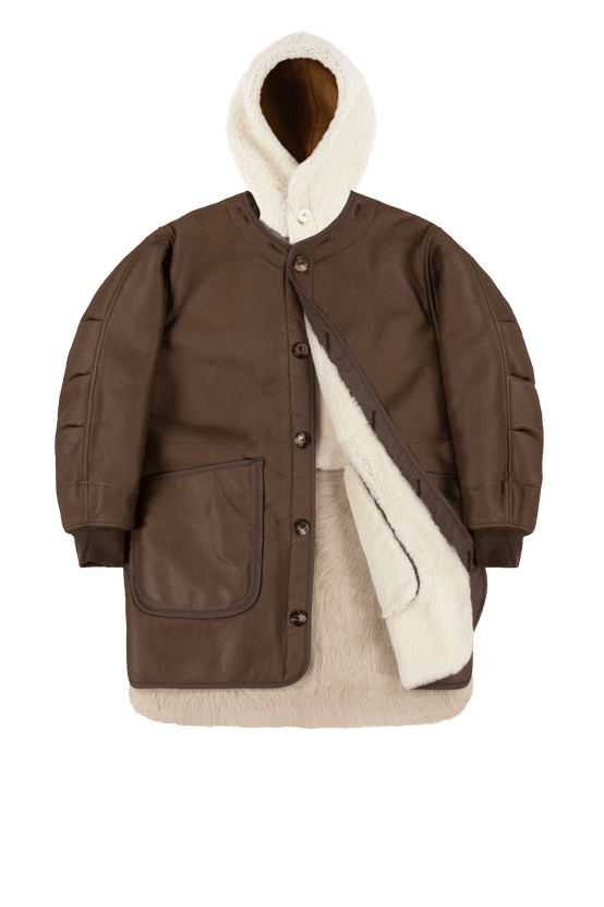 Make it Modular with the new and exclusive reversible and modular Shearling Hoodie. Luxurious, modern, and fully reversible, the Shearling Hoodie has been engineered using bi-colour, Italian, single-layer shearling, with a nappa leather or suede reverse. A light weight, unstructured and roomy hood silhouette with a shearling border, it is the ideal cosy add on to any style for all seasons.