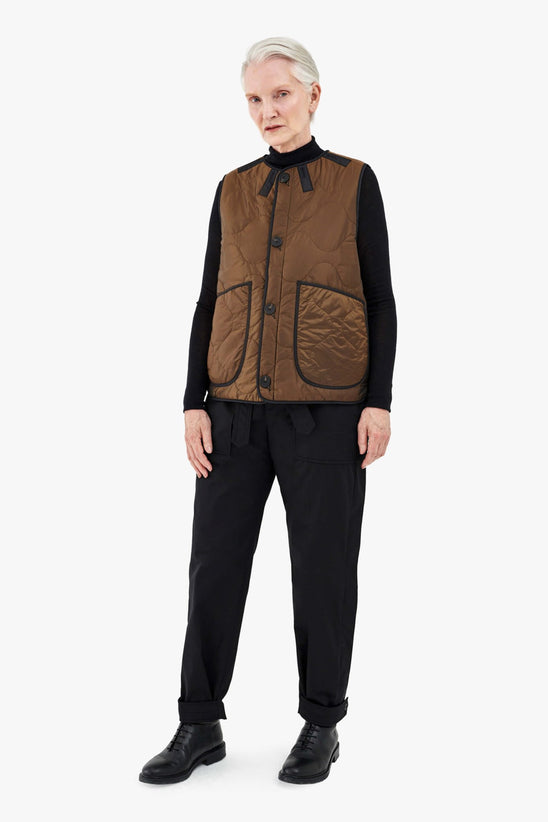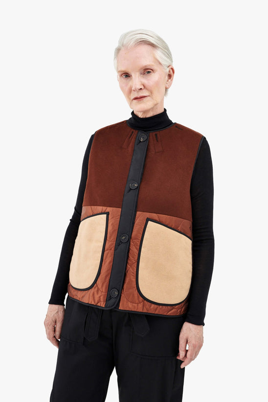 The reversible Patchwork Wool Cropped Liner is a uniquely textural triumph. Fusing together our values of creativity, resourcefulness, and responsibility, the style is patchworked together using luxurious surplus wool and cashmere materials sourced from deadstock archives in London and Italy, combined with our signature quilted nylon. Warm, water-repellent, and super easy to wear, the liner works brilliantly as a standalone sporty piece, or teamed as a liner layer with any of the Marfa Stance Coats, Quilts or Parkas.