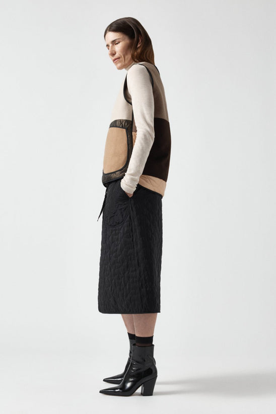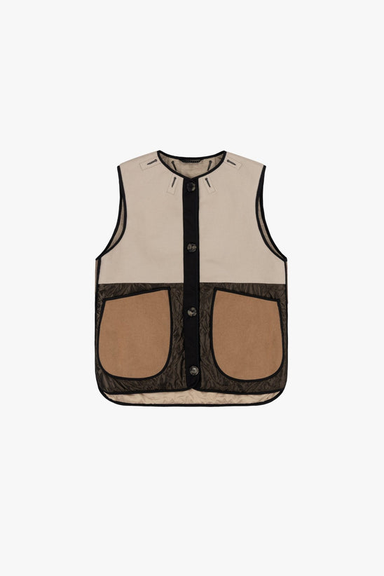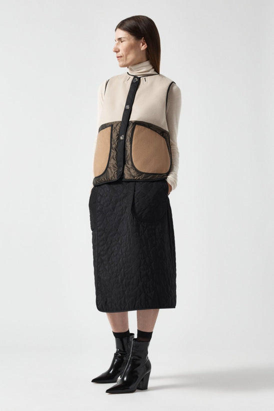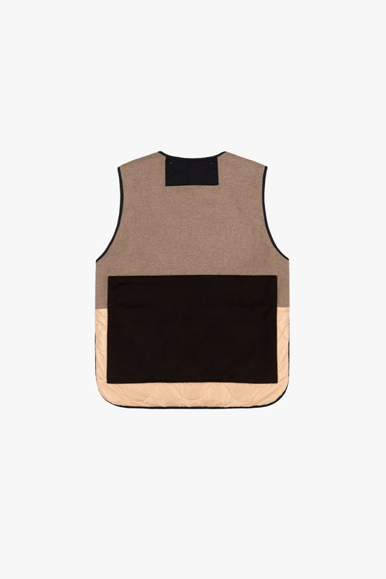 The reversible Patchwork Wool Vest is a uniquely textural triumph. Fusing together our values of creativity, resourcefulness, and responsibility, the style is patchworked together using luxurious surplus wool and cashmere materials sourced from deadstock archives in London and Italy, combined with our signature quilted nylon. Warm, water-repellent, and super easy to wear, the liner works brilliantly as a standalone sporty piece, or teamed as a liner layer with any of the Marfa Stance Coats, Quilts or Parkas.
