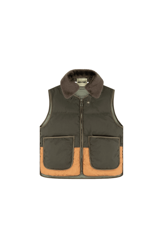 Layer up with the new and exclusive reversible and modular Down Aviator Vest. Taking inspiration from a vintage mountaineering vest, fused with the functionality of a performance modern Down Vest, this fully reversible and modular style has been engineered using tri-colour water repellent Japanese nylon filled with thermal Italian Goose down on the exterior, combined with our signature quilted nylon on the interior in a contrast colour. A cropped silhouette with a subtle dropped hem, it is the ideal piece for layering and travelling from city, to countryside, to the mountains.