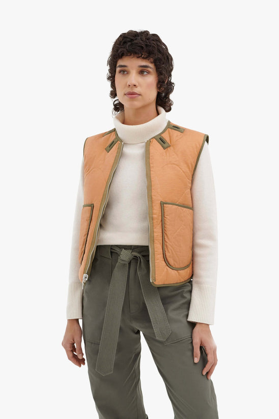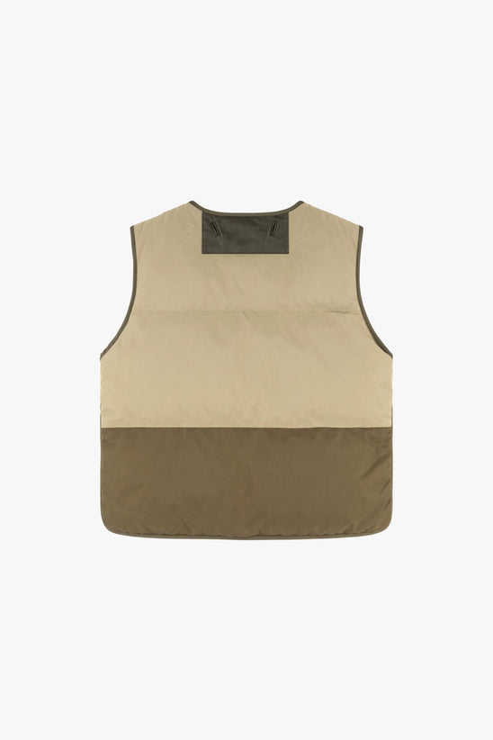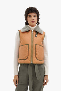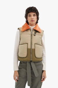 Layer up with the new and exclusive reversible and modular Down Aviator Vest. Taking inspiration from a vintage mountaineering vest, fused with the functionality of a performance modern Down Vest, this fully reversible and modular style has been engineered using tri-colour water repellent Japanese nylon filled with thermal Italian Goose down on the exterior, combined with our signature quilted nylon on the interior in a contrast colour. A cropped silhouette with a subtle dropped hem, it is the ideal piece for layering and travelling from city, to countryside, to the mountains.