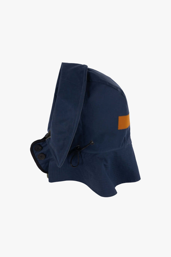 Inspired by a classic military parka hood - note the structural peak and oversized storm guard - the rain hood has been made from water-resistant bonded cotton and provides an excellent shield against inclement weather. Pair it with the Marfa Stance Raincoat for ultimate protection from the elements.