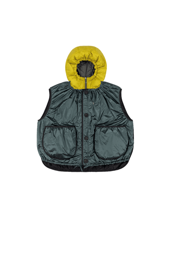 The reversible Parachute Vest is one of our most coveted and seasonless styles. Engineered as an easy-to-wear, versatile gilet style, the Parachute Vest is a practical slice of luxury. Lightweight and showerproof, it’s perfect for summer layering or travelling light, and has been designed to let the wearer take control of the volume. This style features 100% recycled and PFC-free Italian nylon.