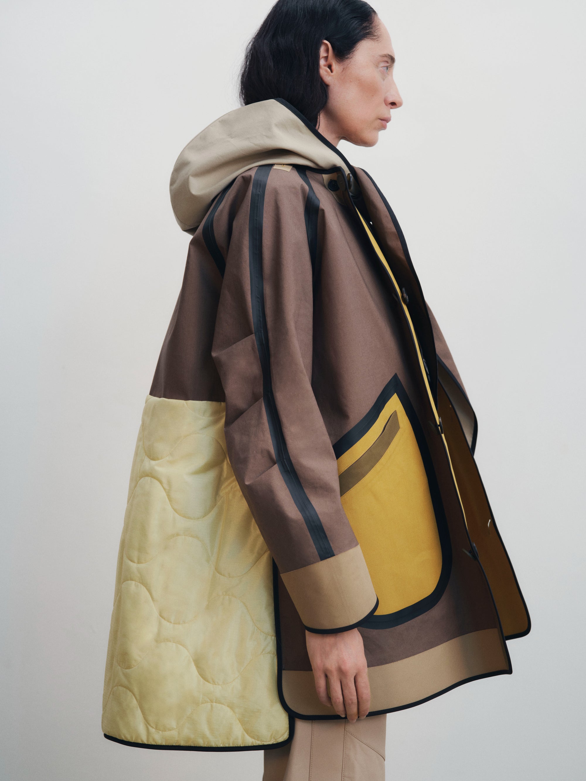 The Raincoat has a roomy fit, with a dropped shoulder, A-line hem silhouette with side seam vents.