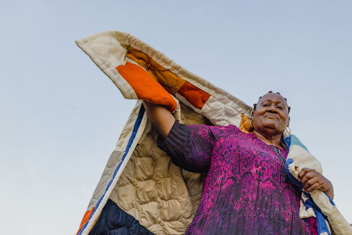 Claudia Pettway Charley, Community Manager of Gee’s Bend says: “This production order from Marfa Stance is the largest brand collaboration to date, providing work and income for 38 quilters in the Gee’s Bend community. It was great to be able to allow so many quilters to take part in this collaboration, allowing them the opportunity to show off their abilities. I loved seeing younger quilters, as well as the more seasoned quilters, participate.”