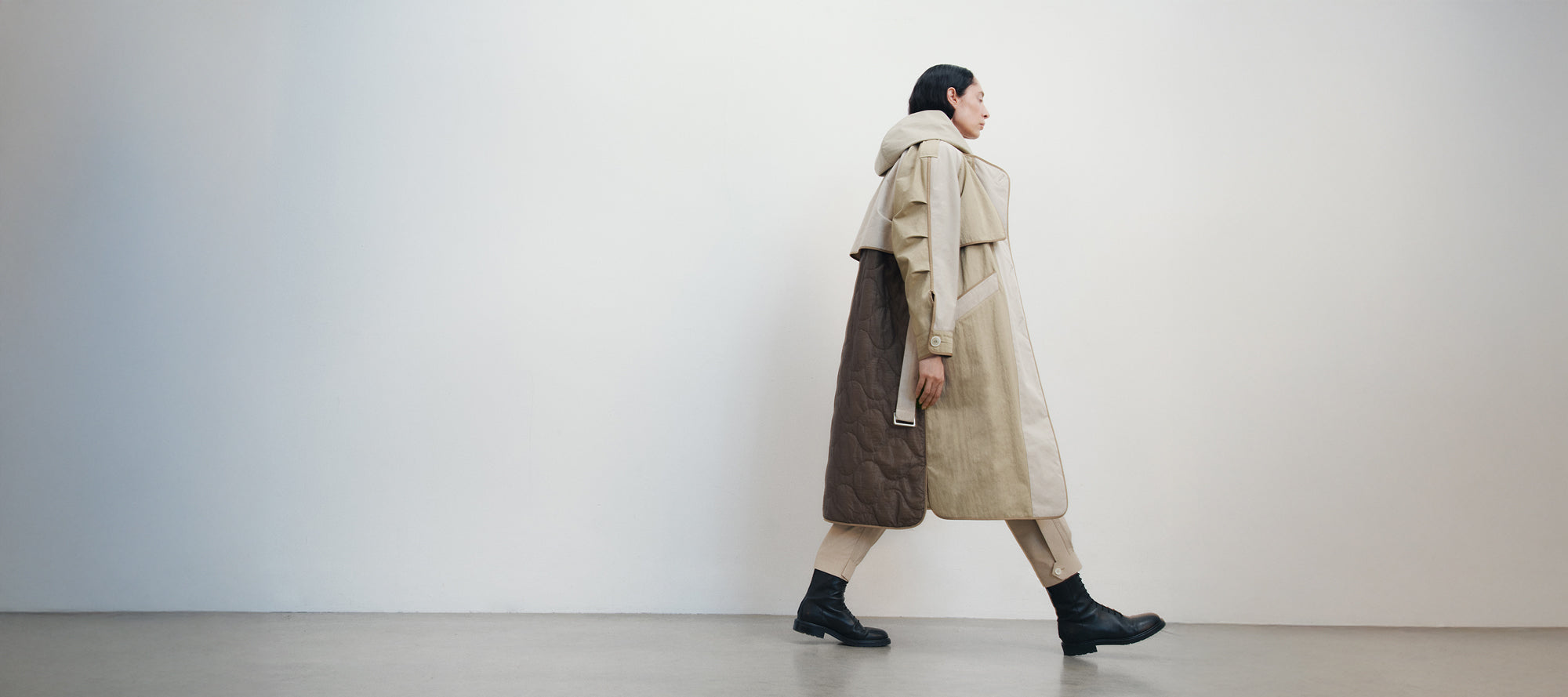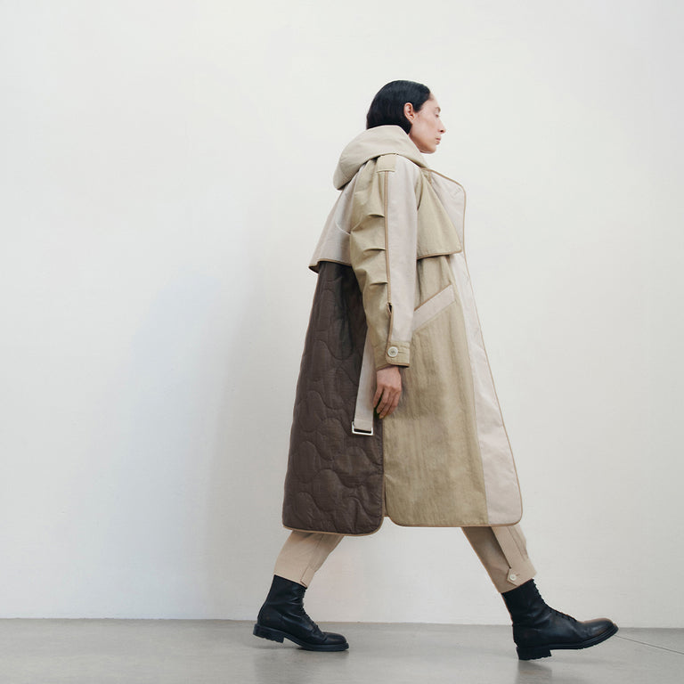 Explore the fresh new styles of the season, the ultimate transition wear that captures our stance on adaptable and responsible design. A range of airy new textures, complementary colourways and sleek styles. Created for longevity, our reversible, buildable and resourceful outerwear and accessories come in silk nylon, cotton and warm new earth tones.