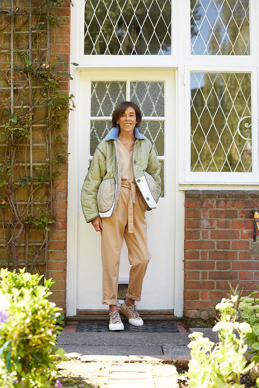 Annabel is 5ft 8 ½ wears size XS in the new Parachute Vest and Patchwork Quilt at her home in North West London.