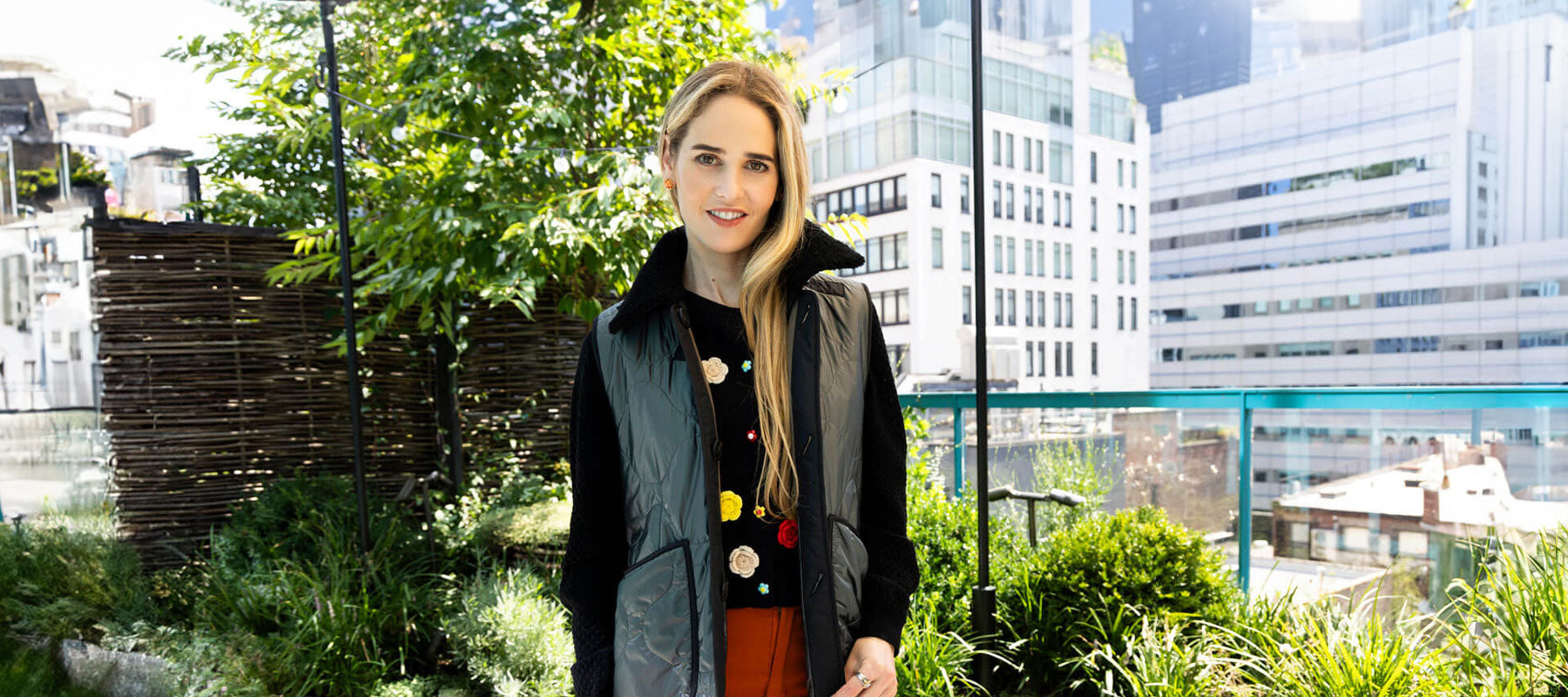 The Marfa Stance design approach has many similarities to interior design, combining fabrics, colours, textures and the attention to detail, adding a contrast trim, piping, and lining. I can see many parallels in our design ethos and values, from sustainability to personal expression and that is what draws me to the brand. I love my Wool Quilt Patchwork Liner with a turquoise panel at the back that matches the colour of the Warren Street Hotel façade I chose. I add the Knit Hood for contrast in material and texture. The Aviator is fab, especially with that extra pop of colour with the Striped Collar turned up. The added features look great, but also serve a purpose and that’s the mark of successful design.