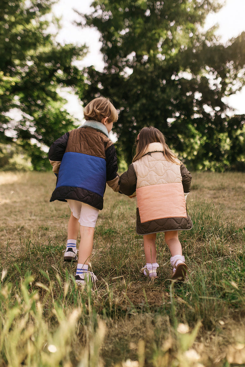 A scaled-down, unisex version of the Marfa Stance icon. Introducing the Patchwork Quilt reimagined for children ages 3-10. Make it modular for colder seasons with the Marfa Mini Shearling Collar or Quilted Hood.