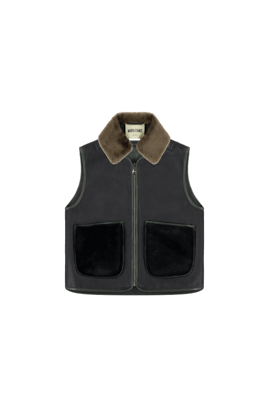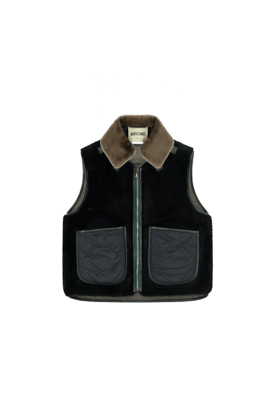 Fast becoming our best-selling vest, inspired by the style and functionality of vintage aviator jackets, this fully reversible style has been engineered using the finest nappa finished shearling and our signature quilted nylon. A thoroughly modern hybrid, the reversible Cropped Aviator Vest with a slimline and cropped silhouette, is ideal to wear as a slim fit liner or alone as a sleeveless layer over a sweater or a dress. The style pairs perfectly with our Aviator collar for an authentic flight jacket look.