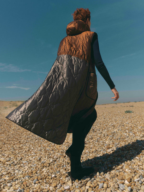 Inspired by the ethos of celebrated artist Donald Judd, after a visit to Marfa, Texas, Georgia’s ‘eureka moment’ happened on a transatlantic flight. A frequent commuter between the US and the UK, she started sketching out an idea for the perfect modular garment. Adaptable. Reversible. Enhanceable. Forever wearable, regardless of lifestyle or climate. Miles high – in the sky above the Atlantic, the concept for Marfa Stance was born.