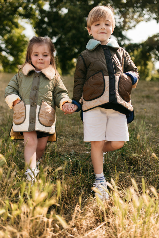 Introducing the three playful additions to our modular children's collection: the Patchwork Quilt, Shearling Collar, and Quilt Hood. Designed for layering, styling, and everyday adventures - each piece comes in multiple colourways and can be mixed and matched for custom looks all year round.