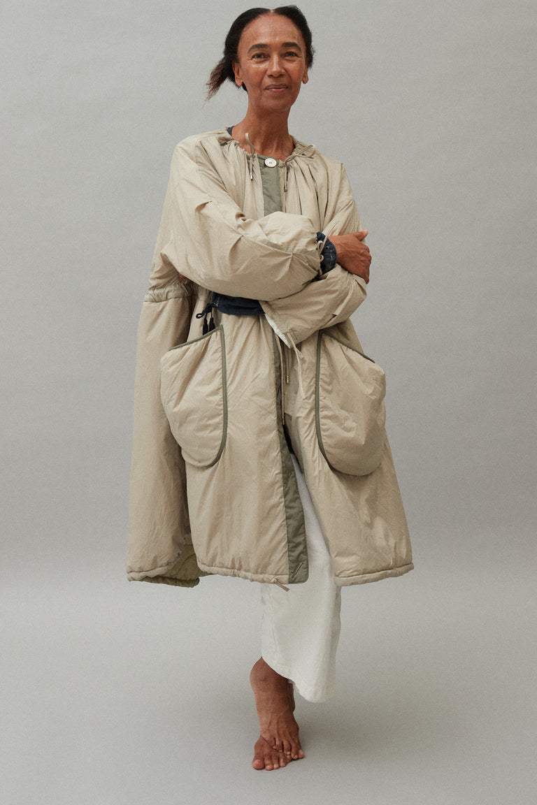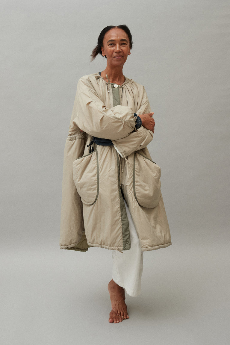 Renowned for designing utilitarian, functional, ageless, and seasonless outerwear, Georgia envisioned a wardrobe solution that could meet the needs of the global traveller across different climates, seasons, and occasions for longevity, through an intelligent and creative system of reversible garment and modular accessories.