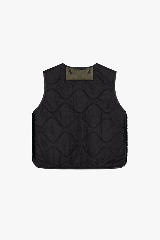 Fast becoming our best-selling vest, inspired by the style and functionality of vintage aviator jackets, this fully reversible style has been engineered using the finest nappa finished shearling and our signature quilted nylon. A thoroughly modern hybrid, the reversible Cropped Aviator Vest with a slimline and cropped silhouette, is ideal to wear as a slim fit liner or alone as a sleeveless layer over a sweater or a dress. The style pairs perfectly with our Aviator collar for an authentic flight jacket look.