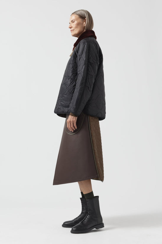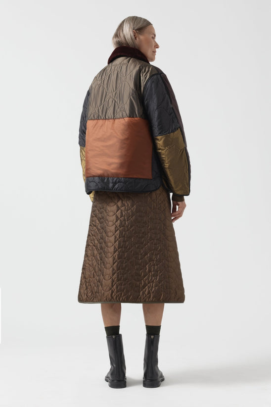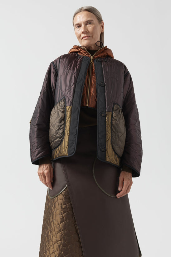 The Patchwork Quilt has a roomy fit, with a dropped shoulder, and enhanced with an exaggerated cocoon shaping towards the back body for extra style impact.